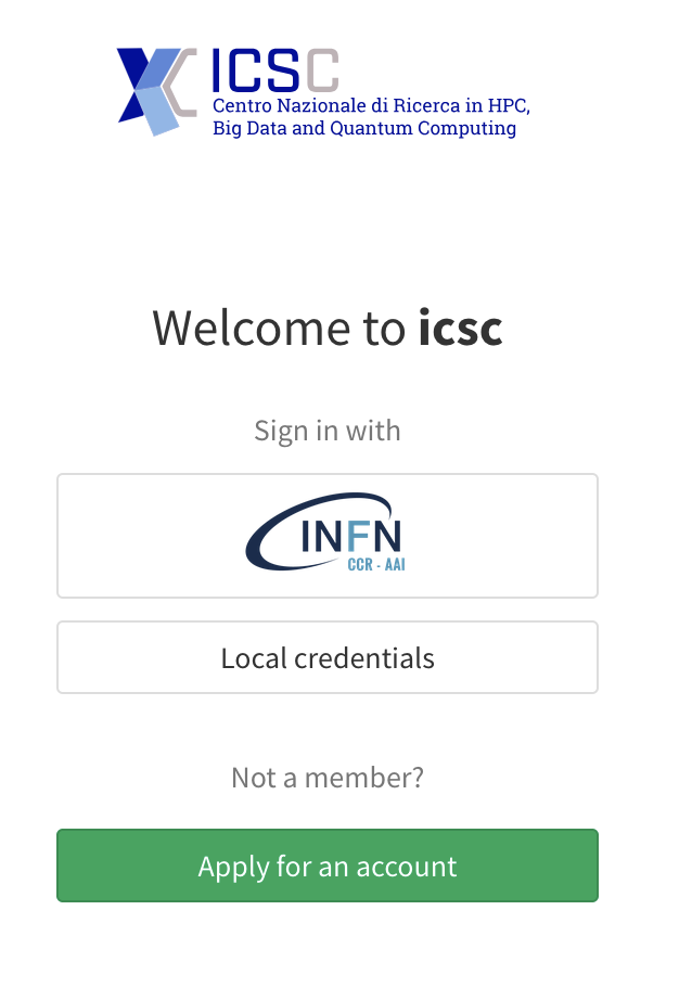 If you don’t have an account, go to this page: https://iam-icsc.cloud.infn.it